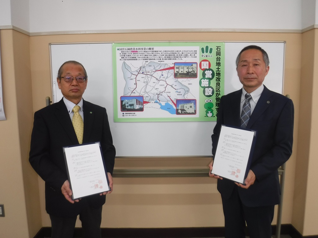 弊社は、石岡台地土地改良区(理事長:島田 穣一殿)との間に地域貢献活動に関する協定を締結いたしました。