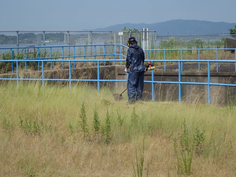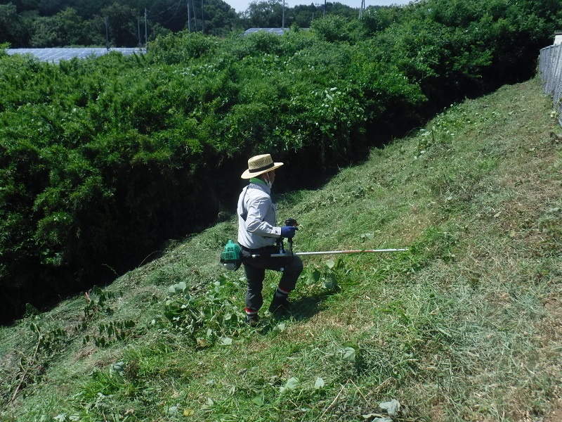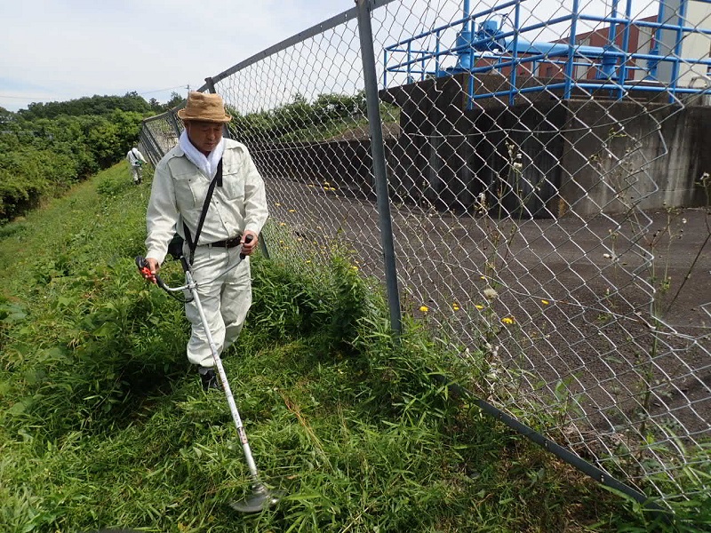 第1揚水機場周辺を草刈り機を使用しての除草作業を行いました。 この日は猛暑日となったので熱中症にならないように水分補給等の対策をとりながら作業を行いました。