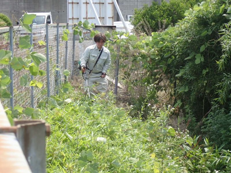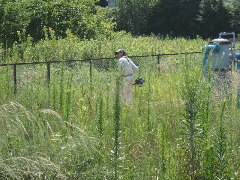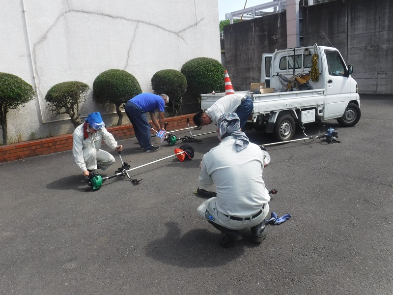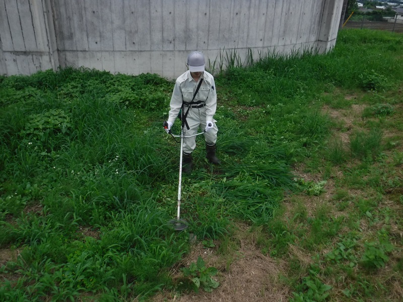 第2揚水機場(中央管理所)周辺を草刈り機を使用しての除草作業を行いました。新入社員も活動に参加し除草作業を頑張っていました。