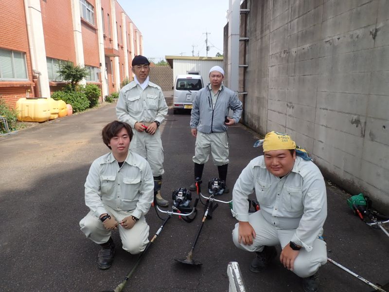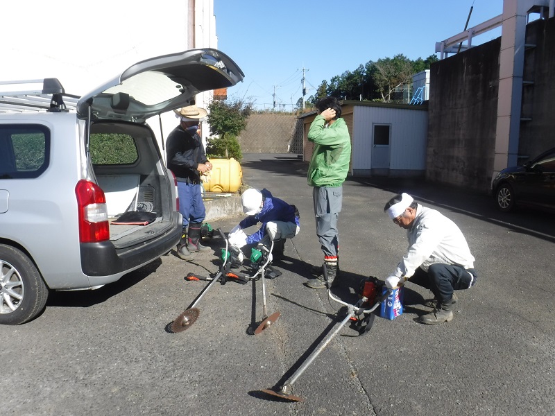 今回は、第2揚水機場(中央管理所)の除草作業を中心に行いました。総勢5名で草刈り機を使用して雑草の除草を行いました。