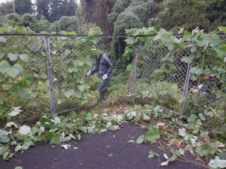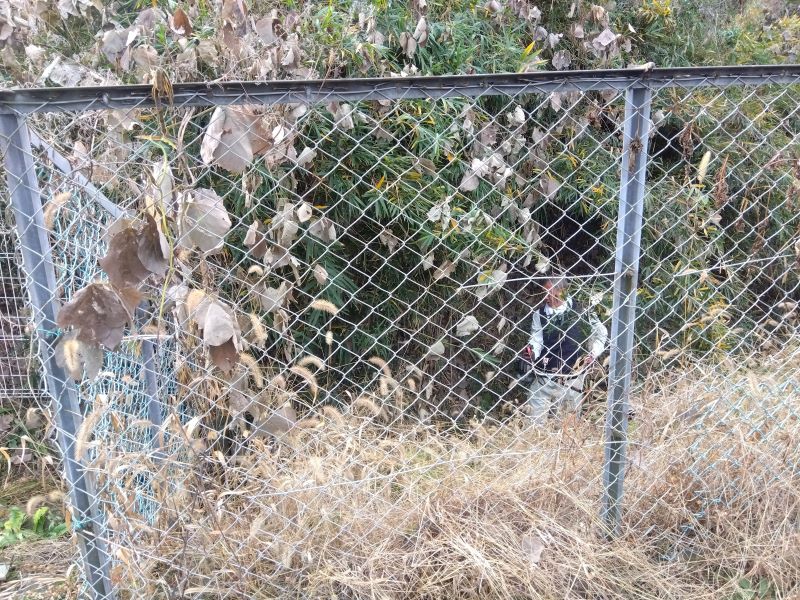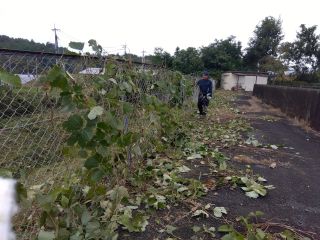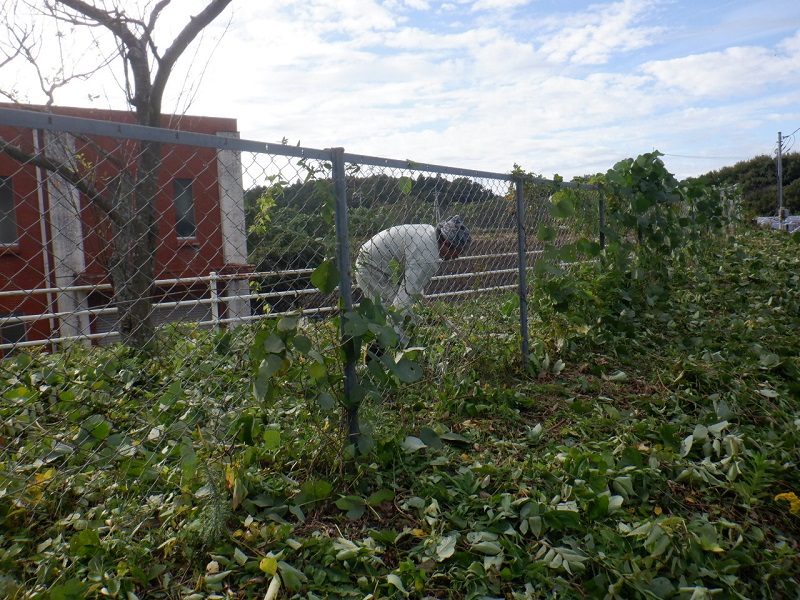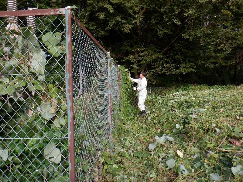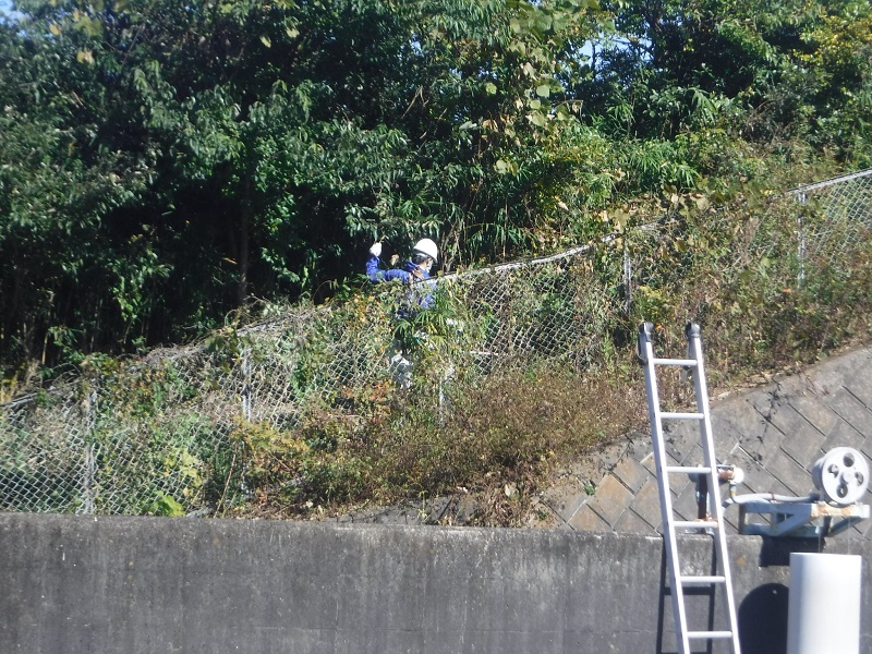 第2揚水機場(中央管理所)周辺の草刈り・フェンスに巻き付いたツタの除去を行いました。
