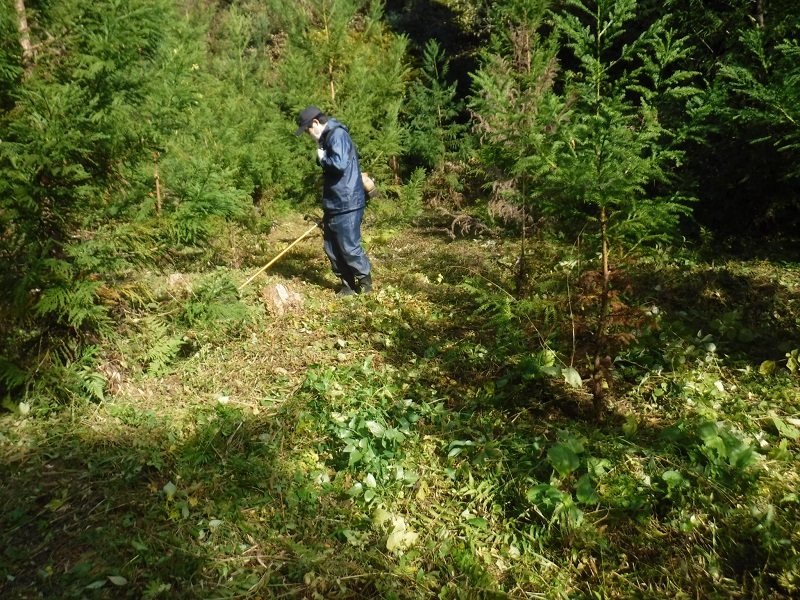 今回は、山桜を植樹するための下地作り(草刈り・わら敷き)や管理道路上の倒木や土砂の撤去を行いました。天気が良く作業をするにはちょうど良い気候でした。作業は午前中で終了して、地元の方が用意してくれた食事を済ませて解散となりましたが、地元で採れた野菜や那珂川を遡上してきた鮭の切り身をお土産にもらう事が出来ました。