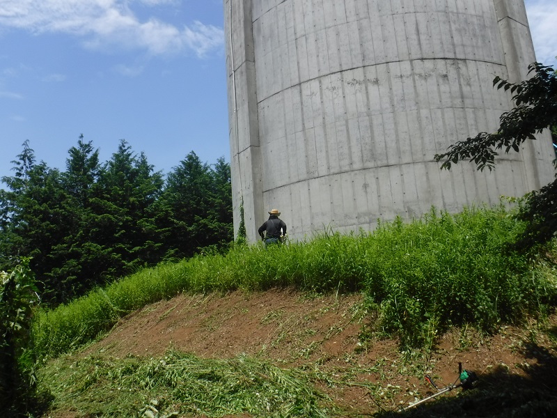 今回は、第2揚水機場(中央管理所)、美野里調圧水槽、小美玉市中延2219ほかの場所の除草作業を中心に行いました。総勢7名で草刈り機を使用して雑草の除草を行いました。