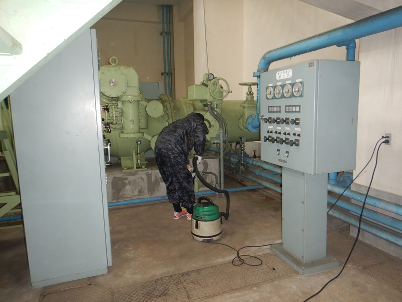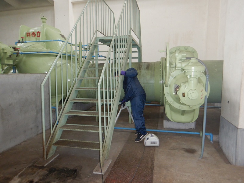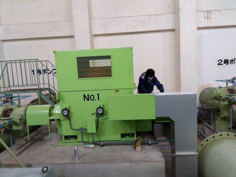 今回は第2揚水機場(中央管理所)の施設内の清掃活動を行いました。ポンプ上の汚れを拭き取り、ゴミを取り除く作業を行いました。