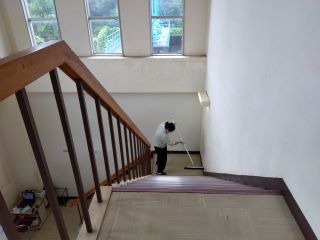 雨天のため、第2揚水機場(中央管理所)周辺の草刈りの予定を変更し施設内の清掃活動を行いました。 各部屋の清掃、ポンプ設備の汚れの拭き取り・床のごみを取り除きました。