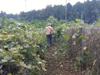 前回雨天のために実施できなかった第2揚水機場(中央管理所)周辺の草刈り・フェンスに巻き付いたツタの除去を行いました。