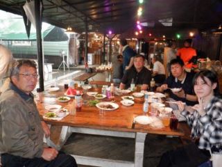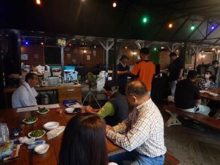 社外にて表彰された社員への賛辞を贈ったのち乾杯をしてBBQが始まりました。