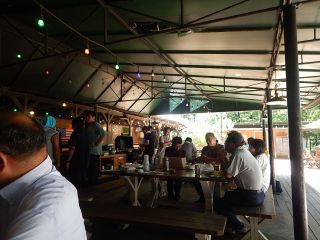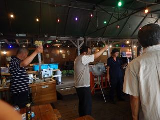 気温が35℃を超える中、BBQ大会が始まりました。美味しいお肉、野菜、海鮮を堪能しつつ・・・あまりの暑さにみんなで売店でかき氷を購入したり・・・