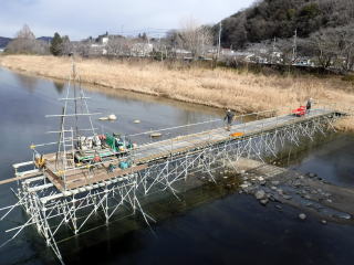 ボーリング調査とブリッジ足場