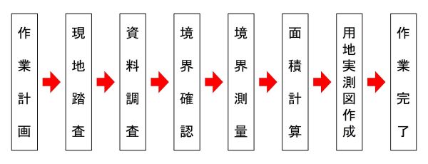 用地測量とは、土地及び境界等を調査し、用地取得等に必要となる資料や図面作成を行います。測量作業は、資料調査・境界確認・境界測量・面積計算などに細分化されており、用地取得する土地の境界を確定します。